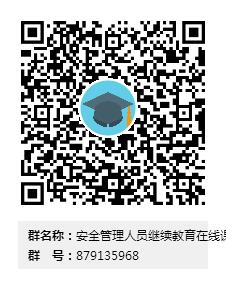 2、请所有学员对照班级学员名单于开课前3日内(不要提前申请)完成申请加入“安全管理人员继续教育在线课堂”QQ群,群号码为:879135968,群二维码为:
