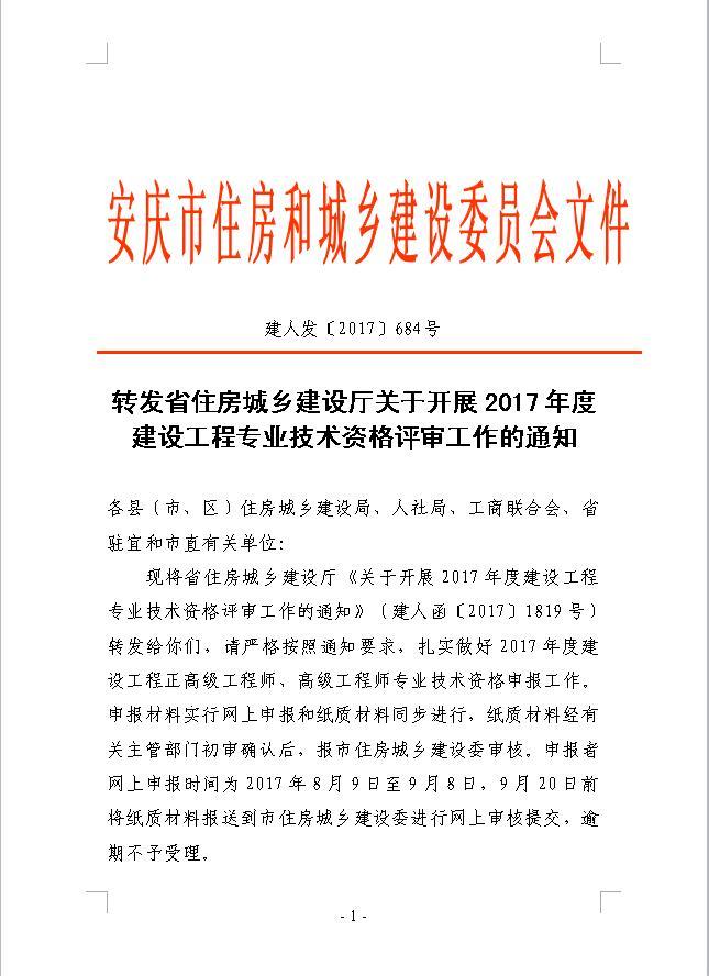 附件1:关于开展2017年度建设工程专业技术资格评审工作的通知