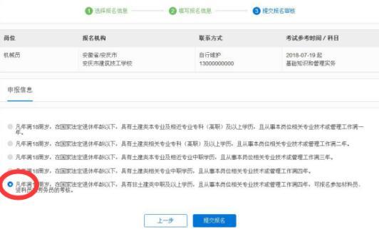 “提交报名审核”选择申报信息后点击“提交报名”(根据自己的申报具体情况选择)